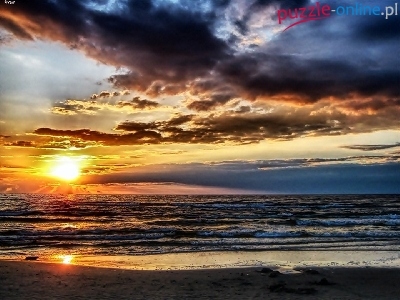 Puzzle Morze, Zachód, Słońce, Chmury