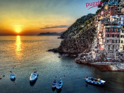 Łódki, Włochy, Domy, Morze, Riomaggiore