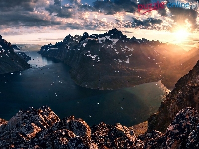 Puzzle Morze, Grenlandia, Góry, Wschód Słońca