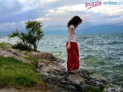 Morze, Brzeg, Kobieta, Wzburzone, Kamienisty