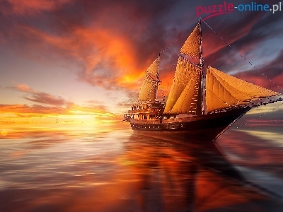 Puzzle Morze, Żaglowiec, Zachód słońca