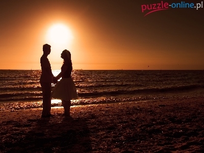 Puzzle Morze, Kobieta, Mężczyzna, Zachód Słońca
