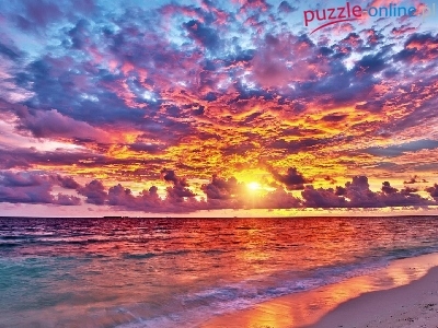 Puzzle Morze, Kolorowe, Niebo, Zachód słońca