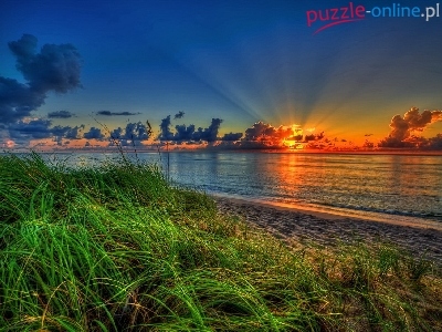 Puzzle Zachód, Morze, Słońca