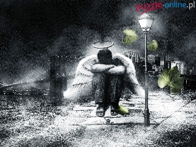 Puzzle Most, Deszcz, Anioł, Noc