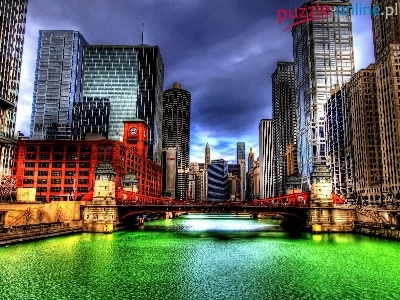 Puzzle Most, Drapacze Chmur, Rzeka