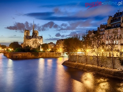 Dame, Most, Noc, Rzeka, Notre, Paryż, Domy