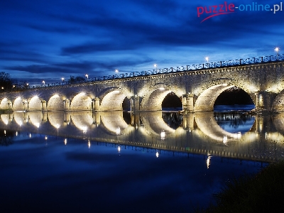 Odbicie, Rzeka, Noc, Most, Drzewa, Oświetlenie