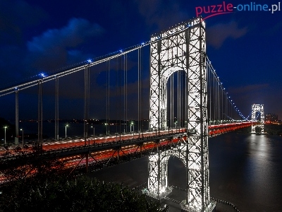 Puzzle Most, Rzeka, Podświetlony, Noc
