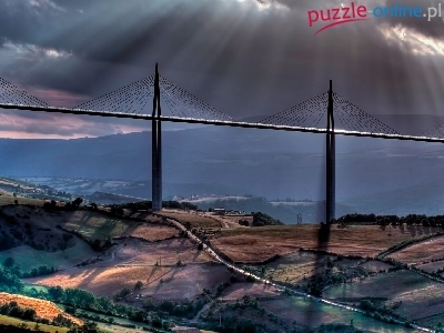 Pola uprawne, Le Wiadukt Millau, Promienie, Millau-Millau, Słońca, Rzeki, Tarn, Francja, Dolina, Wzgórza