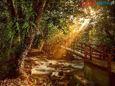 Most, Mgła, Las, Rzeka, Przebijające Światło