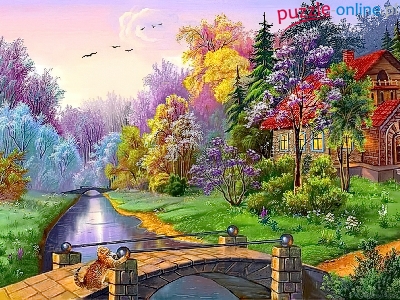 Puzzle Most, DOM, Rzeka, Lato