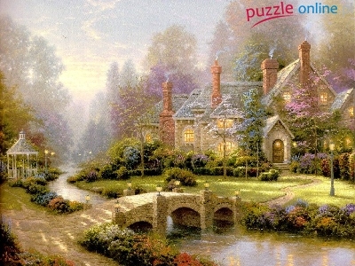 Puzzle Most, Dom, Rzeka, Obraz
