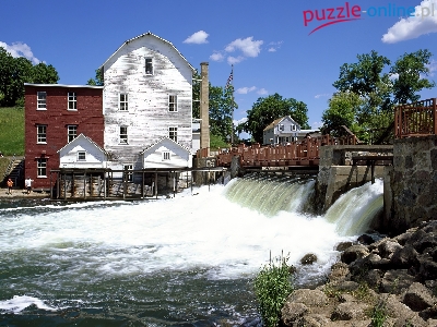 Puzzle Most, Spiętrzona, Rzeka, Budynki