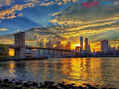 Puzzle Most, Nowy Jork, Panorama, Zachód Słońca