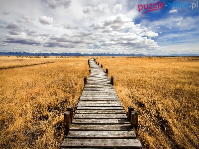 Mostek, Chmury, Pola, Drewniany, Niebo