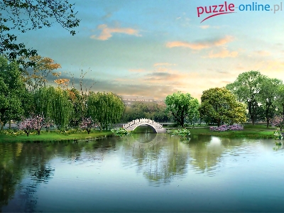 Puzzle Mostek, Rzeka, Niebo, Drzewa