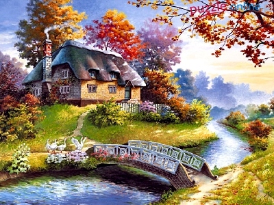 Puzzle Mostek, Dom, Rzeka, Gęsi