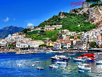 Motorówki, Salerno, Łódki, Włochy, Góry, Jachty