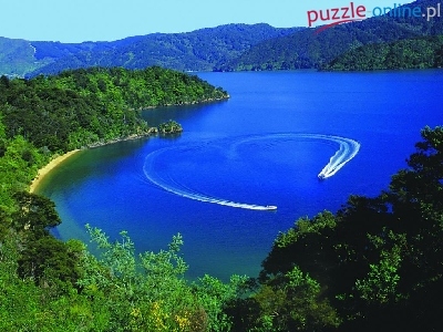 Puzzle Motorówki, Las, Jezioro, Nowa Zelandia