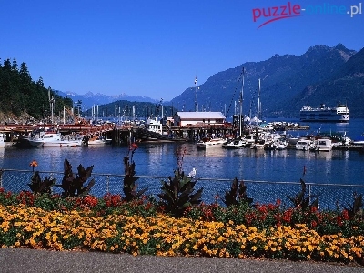 Motorówki, Kwiaty, Port, Statek, Góry