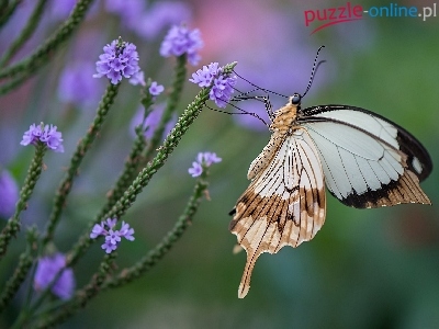 Puzzle Fioletowe, Motyl, Kwiatki