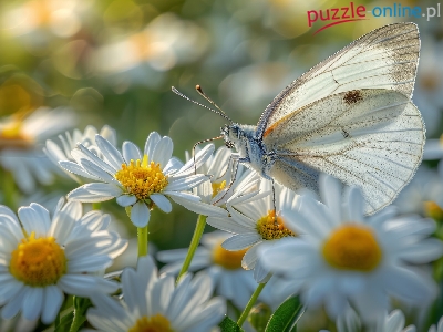 Światło, Bielinek kapustnik, Motyl, Białe, Grafika, Kwiaty