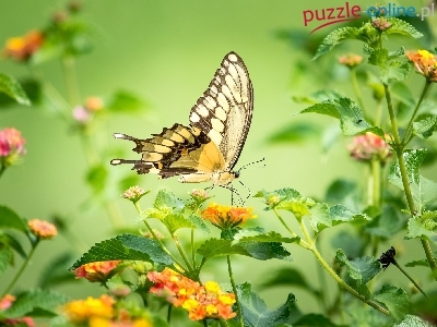 Puzzle Kolorowe, Motyl, Kwiaty