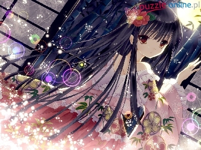Puzzle Motyl, Dziewczyna, Kwiatek, Bambus