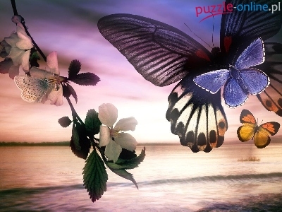 Puzzle Liść, Motyl, Morze