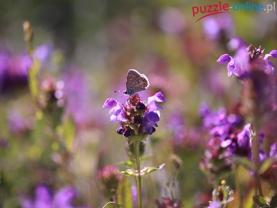 Puzzle Fioletowe, Motyl, Modraszek ikar, Kwiaty