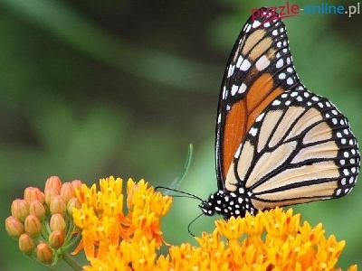 Puzzle Żółte, Motyl, Monarcha, Kwiaty