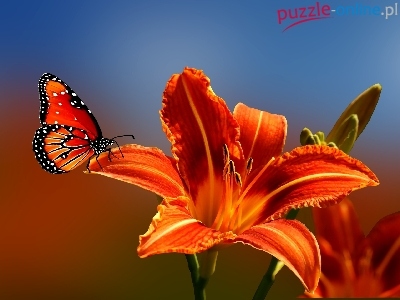 Puzzle Pomarańczowa, Motyl, Liliowiec