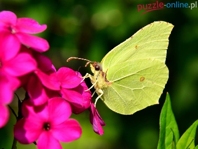 Puzzle Różowy, Latolistek cytrynek, Motyl, Kwiat