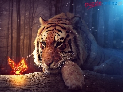 Puzzle Motyl, Tygrys, Świecący, Blask