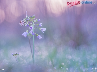 Motyl, Zbliżenie, Fioletowe, Kwiatki, Zorzynek rzeżuchowiec