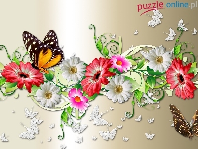 Motyle, Czerwone, Komputerowa, Białe, Gerbery, Grafika
