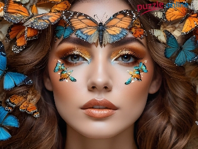 Puzzle Makijaż, Kobieta, Twarz, Motyle