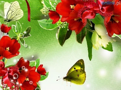 Motyle, Art, Czerwone, Tulipany, Grafika