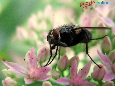 Puzzle Różowe, Mucha, Kwiaty