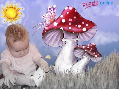 Puzzle Muchomorki, Małe, Dziecko, Motylek
