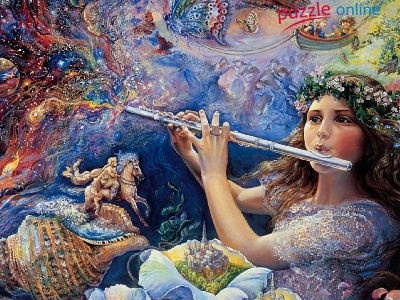 Puzzle Muszla, Dziewczyna, Flet, Kwiaty