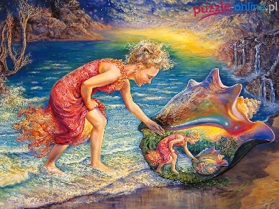 Puzzle Muszla, Dziewczyna, Plaża, Woda