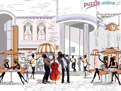 Muzycy, 2D, Ulica, Kawiarnia, Grafika