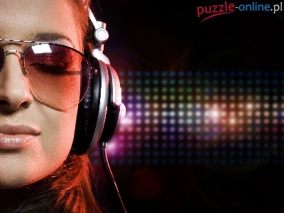 Puzzle Muzyka, Kobieta, Słuchawki, Okulary