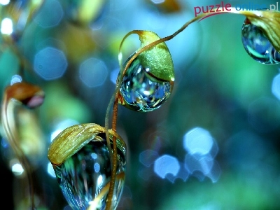 Puzzle Na, Krople, Rosy, Liściach