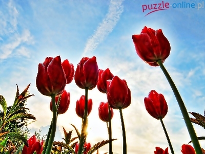 Puzzle Na Tle, Czerwone, Tulipany, Nieba