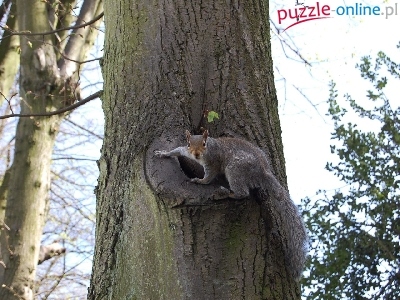 Puzzle Na, Szara, Wiewióreczka, Drzewie