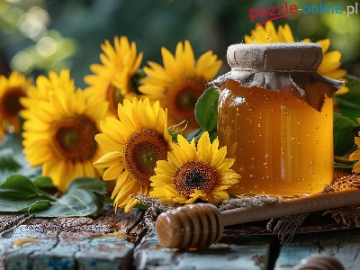 Stare, Słoik, Miód, Nabierak, Deski, Słoneczniki ozdobne