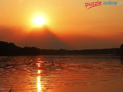 Puzzle Nad, Zachód, Słońca, Jeziorem